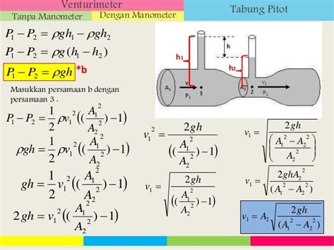 Bagaimana penurunan rumus dari venturimeter dengan manoneter?